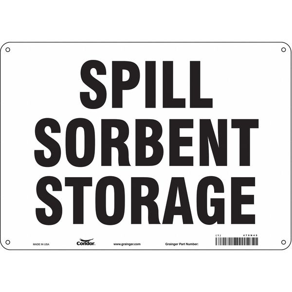 Safety Sign, Horizontal Rectangle, Number of Printed Sides 1, English, Sign Format Other Format, Sign Legend Spill Sorbent Storage, Sign Legend Background Color White, Sign Legend Style Text