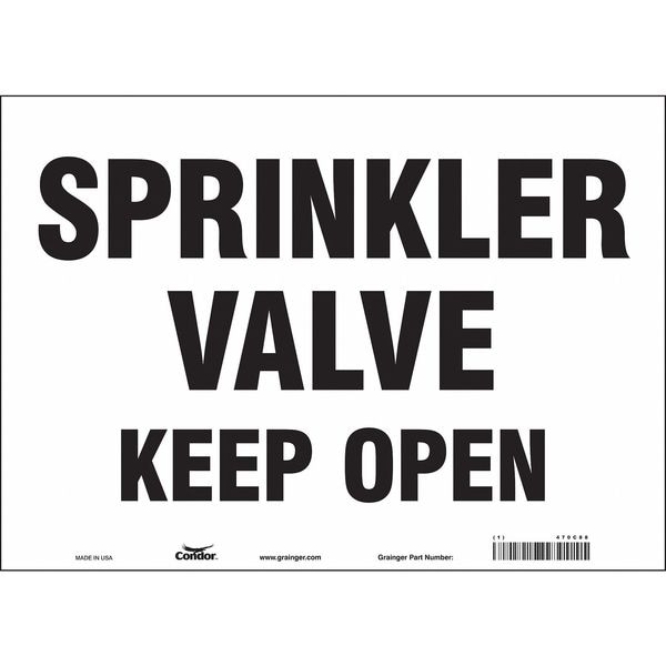 Safety Sign, Horizontal Rectangle, Number of Printed Sides 1, English, Sign Format Other Format, Sign Legend Sprinkler Valve Keep Open, Sign Legend Background Color White, Sign Legend Style Text