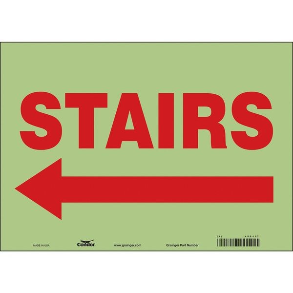 Safety Sign, Horizontal Rectangle, Number of Printed Sides 1, English, Sign Legend Stairs (Arrow), Sign Legend Background Color White, Sign Legend Style Symbol and Text