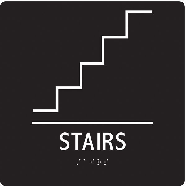 Safety Sign, Square, Number of Printed Sides 1, English, Sign Legend Stairway, Sign Legend Background Color Black, Sign Legend Style Symbol and Text