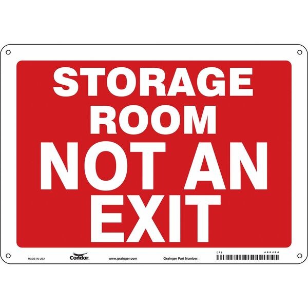 Safety Sign, Horizontal Rectangle, Number of Printed Sides 1, English, Sign Legend Storage Room Not An Exit, Sign Legend Background Color Red, Sign Legend Style Text