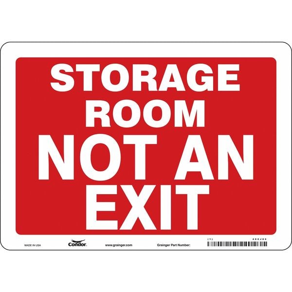 Safety Sign, Horizontal Rectangle, Number of Printed Sides 1, English, Sign Legend Storage Room Not An Exit, Sign Legend Background Color Red, Sign Legend Style Text