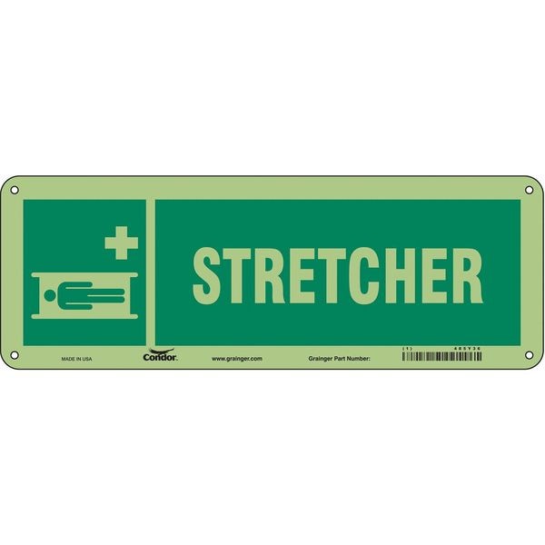 Safety Sign, Vertical Rectangle, Number of Printed Sides 1, English, Sign Format Other Format, Sign Legend Stretcher, Sign Legend Background Color Green, Sign Legend Style Symbol and Text