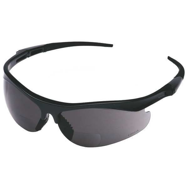 T101 Reader Safety Glasses, Black Wraparound Frame, 3.0 Diopter, Gray Lens, Anti-Scratch Coating