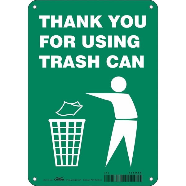 Safety Sign, Horizontal Rectangle, Number of Printed Sides 1, English, Sign Legend Thank You For Using Trash Can, Sign Legend Background Color Green, Sign Legend Style Symbol and Text