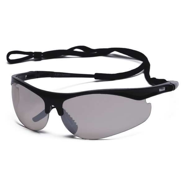 Safety Glasses, Series T101, Gender Unisex, Lens Color Clear/Silver, Polarized Lens No, Lens Coating Scratch-Resistant, Mirrored, No Foam Lined, Eyewear Frame Design Wraparound, Eyewear Frame Style Half-Frame, Frame Color Black, Eyewear Size Universal, Frame Material Polycarbonate, Lens Material Polycarbonate, Temple Color Black, Temple Style Spatula, Photochromatic Lens No, Metal Detectable No, X-Ray Detectable No, UV Protection 99.99 Percent UVA/UVB, Includes Cord, Standards ANSI Z87.1-2015