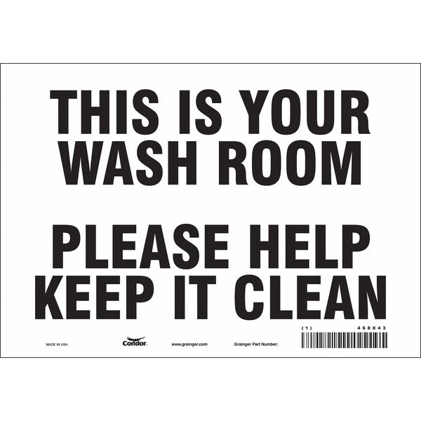 Safety Sign, Vertical Rectangle, Number of Printed Sides 1, English, Sign Legend This Is Your Wash Room Please Help Keep It Clean, Sign Legend Background Color White, Sign Legend Style Text