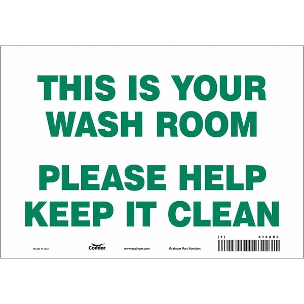Restroom Sign, Vertical Rectangle, Number of Printed Sides 1, English, Sign Format Other Format, Sign Legend This Is Your Wash Room Please Help Keep It Clean, Sign Legend Background Color White, Sign Legend Style Text
