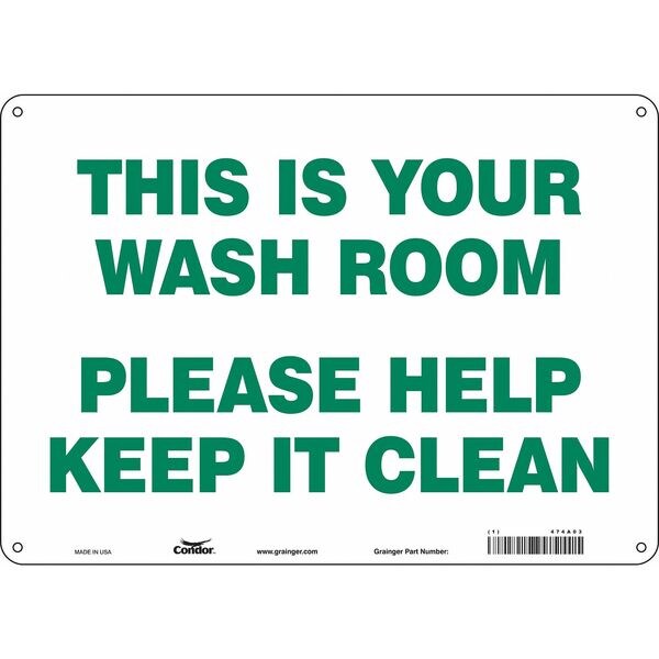 Restroom Sign, Horizontal Rectangle, Number of Printed Sides 1, English, Sign Format Other Format, Sign Legend This Is Your Wash Room Please Help Keep It Clean, Sign Legend Background Color White, Sign Legend Style Text