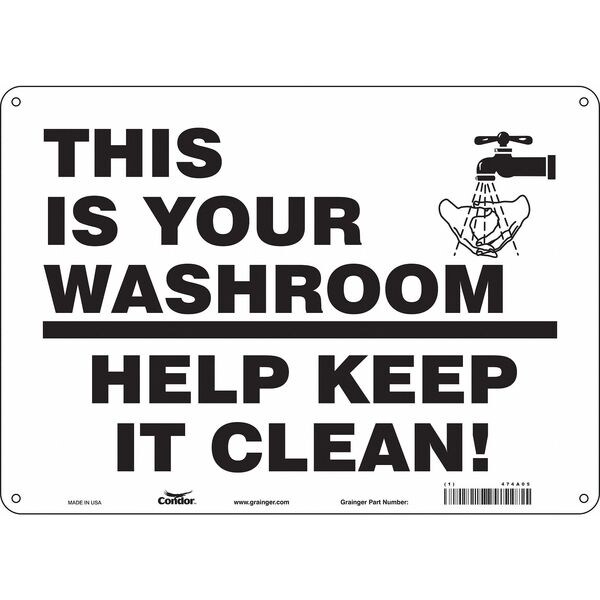 THIS IS YOUR WASHROOM HELP KEEP IT CLEAN, 14 in W x 10 in H, Horizontal Rectangle, Aluminum, 474A05