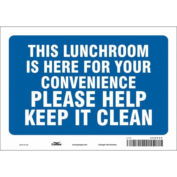 Safety Sign, Vertical Rectangle, Number of Printed Sides 1, English, Sign Legend This Lunchroom Is Here For Your Convenience Please Help Keep It Clean, Sign Legend Background Color Blue, White, Sign Legend Style Text
