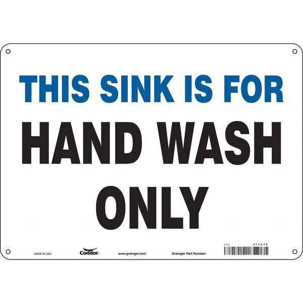 Safety Sign, Horizontal Rectangle, Number of Printed Sides 1, English, Sign Legend This Sink Is For Hand Wash Only, Sign Legend Background Color White, Sign Legend Style Text