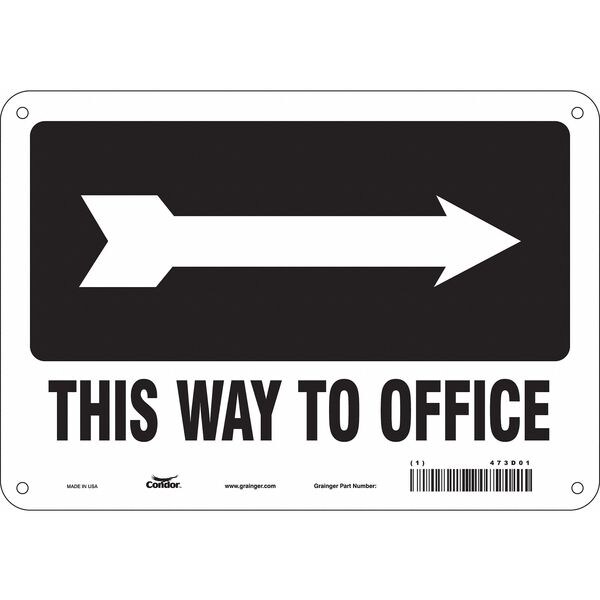 Safety Sign, Vertical Rectangle, Number of Printed Sides 1, English, Sign Legend This Way To Office (Right Arrow), Sign Legend Background Color White, Sign Legend Style Symbol and Text