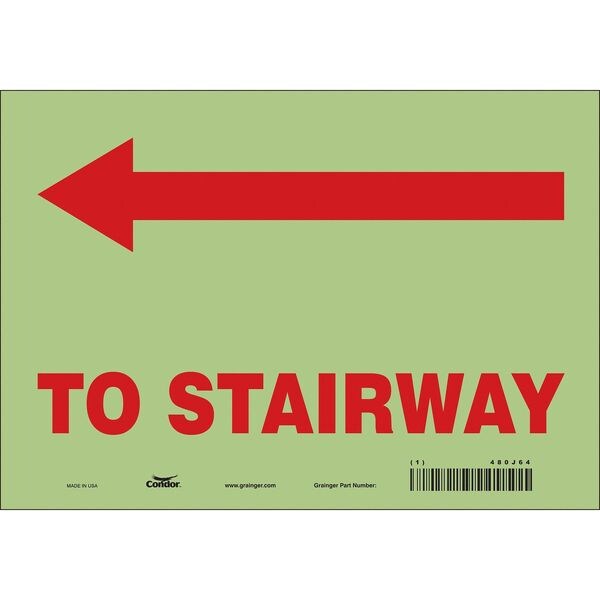 Safety Sign, Vertical Rectangle, Number of Printed Sides 1, English, Sign Format Other Format, Sign Legend To Stairway (Arrow), Sign Legend Background Color White, Sign Legend Style Symbol and Text