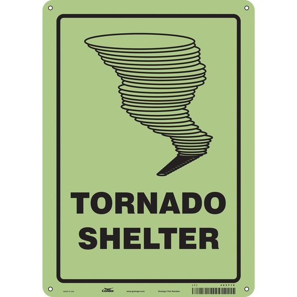 Safety Sign, Vertical Rectangle, Number of Printed Sides 1, English, Sign Format Other Format, Sign Legend Tornado Shelter, Sign Legend Background Color White, Sign Legend Style Symbol and Text