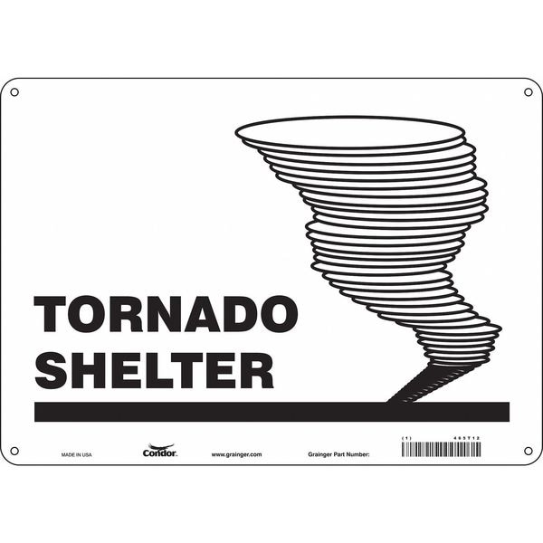 Safety Sign, Horizontal Rectangle, Number of Printed Sides 1, English, Sign Legend Tornado Shelter, Sign Legend Background Color White, Sign Legend Style Symbol and Text