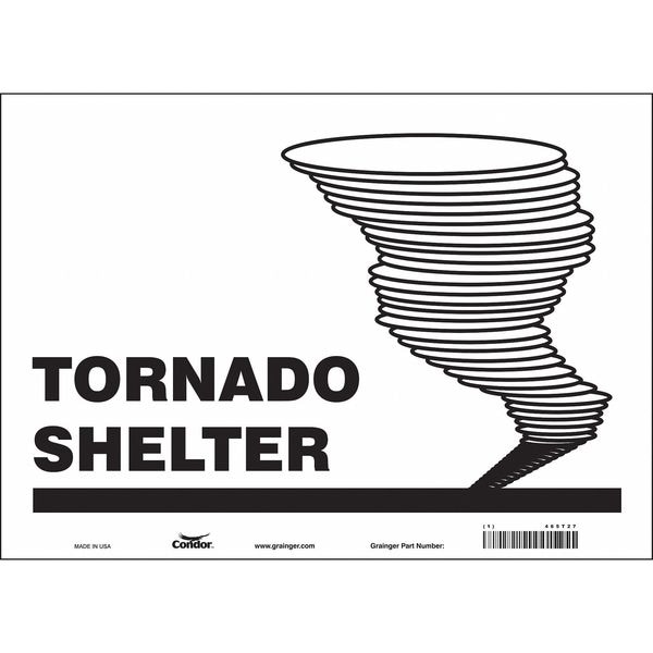 Safety Sign, Horizontal Rectangle, Number of Printed Sides 1, English, Sign Legend Tornado Shelter, Sign Legend Background Color White, Sign Legend Style Symbol and Text