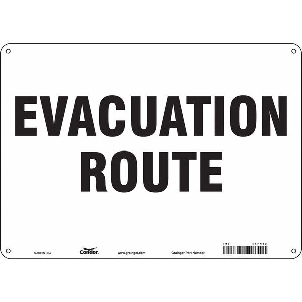 Traffic Sign, Horizontal Rectangle, Number of Printed Sides 1, English, Sign Format Other Format, Sign Legend Evacuation Route, Sign Legend Background Color White, Sign Legend Style Text