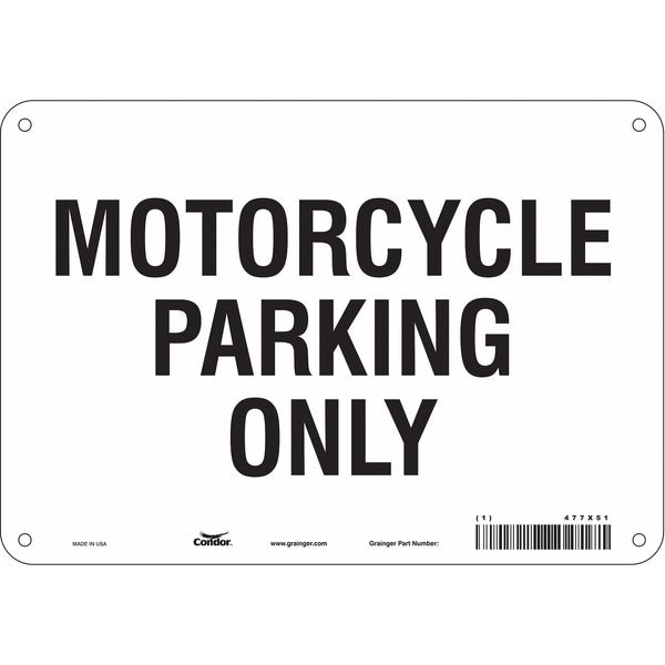 Motorcycle Parking Sign, Height 7 in, Width 10 in, Sign Material Aluminum, Sign Mounting Style Mounting Holes, Printed Language English, Sign Shape Horizontal Rectangle