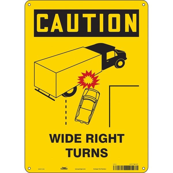 Traffic Sign, Vertical Rectangle, Number of Printed Sides 1, English, Sign Format Traditional OSHA, Sign Legend Wide Right Turns, Sign Legend Background Color Yellow, Sign Legend Style Symbol and Text