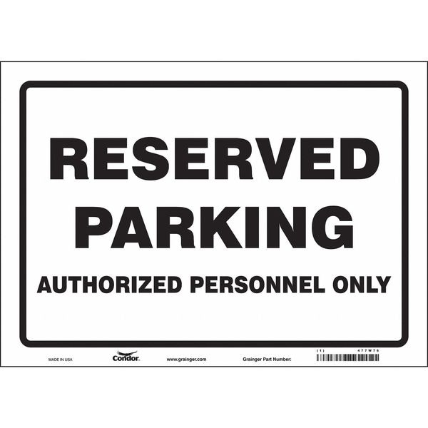 Reserved Parking Sign, Height 10 in, Width 14 in, Sign Material Vinyl, Sign Mounting Style Adhesive, Printed Language English, Sign Shape Horizontal Rectangle