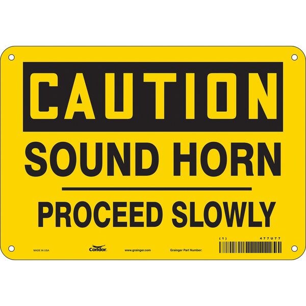 Traffic Sign, Vertical Rectangle, Number of Printed Sides 1, English, Sign Format Traditional OSHA, Sign Legend Sound Horn Proceed Slowly, Sign Legend Background Color Yellow, Sign Legend Style Text
