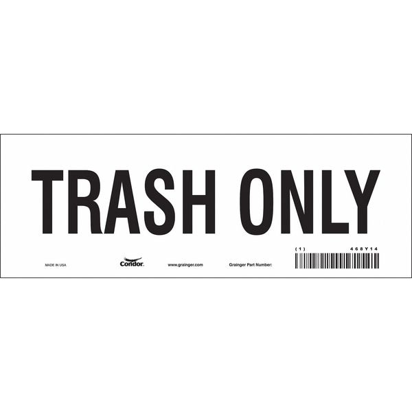 TRASH ONLY, 10 in W x 3 1/2 in H, Vertical Rectangle, Vinyl, 468Y14