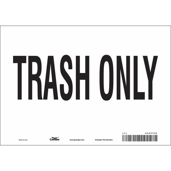 Safety Sign, Vertical Rectangle, Number of Printed Sides 1, English, Sign Legend Trash Only, Sign Legend Background Color White, Sign Legend Style Text