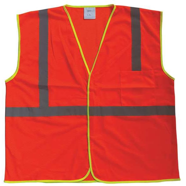 High-Visibility Vest, ANSI Class 1, Vest Size L, XL, Traffic Safety Vest Color Orange/Red, Fits Chest Size 44 in to 50 in, Gender Men's, Stripe Color Silver, Vest Material Polyester Mesh, Vest Closure Type Hook-and-Loop, ATPV Rating Not Rated, Hazard Risk Category (HRC) Not Applicable, Vest Stripe Color Family Silver, Back Stripe Pattern U, Vest Length 28 in, Number of Pockets (Inside) 0, Number of Pockets (Outside) 1, Number of Pockets with Closure 0, Features 360 Degrees Visibility