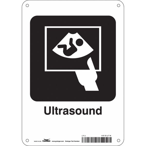 Hospital Sign, Horizontal Rectangle, Number of Printed Sides 1, English, Sign Legend Ultrasound, Sign Legend Background Color Black, White, Sign Legend Style Symbol and Text