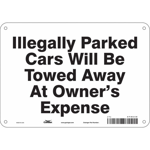 Illegal & Unauthorized Vehicles Will Be Towed Parking Sign, Height 7 in, Width 10 in, Sign Material Aluminum, Sign Mounting Style Mounting Holes, Printed Language English, Sign Shape Horizontal Rectangle