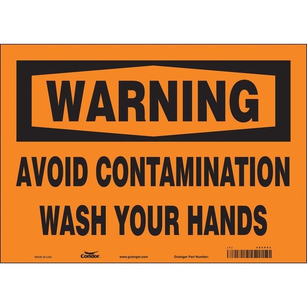 Safety Sign, Horizontal Rectangle, Number of Printed Sides 1, English, Sign Format Traditional OSHA, Sign Legend Avoid Contamination Wash Your Hands, Sign Legend Background Color Orange, Sign Legend Style Text