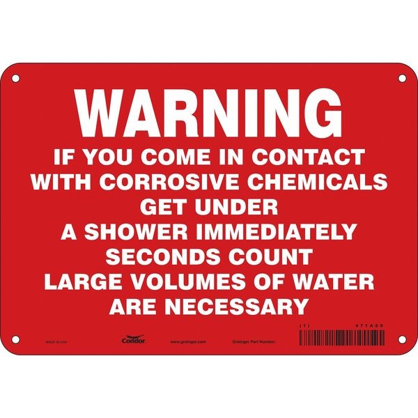 Safety Sign, Vertical Rectangle, Number of Printed Sides 1, English, Sign Format Other Format, Sign Legend Warning If You Come In Contact With Corrosive Chemicals Get Under A Shower Immediately -Seconds Count- Large Volumes Of Water Are Necessary, Sign Legend Background Color Red, Sign Legend Style Text