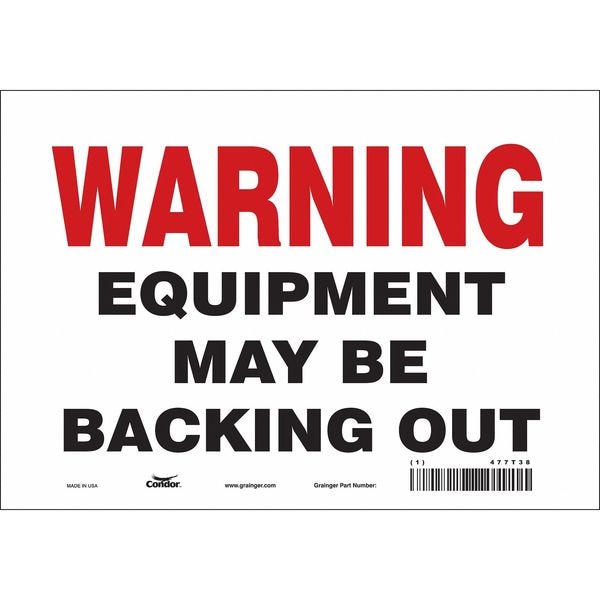 Warning EQUIPMENT MAY BE BACKING OUT, 10 in W x 7 in H, Vertical Rectangle, Vinyl, 477T38