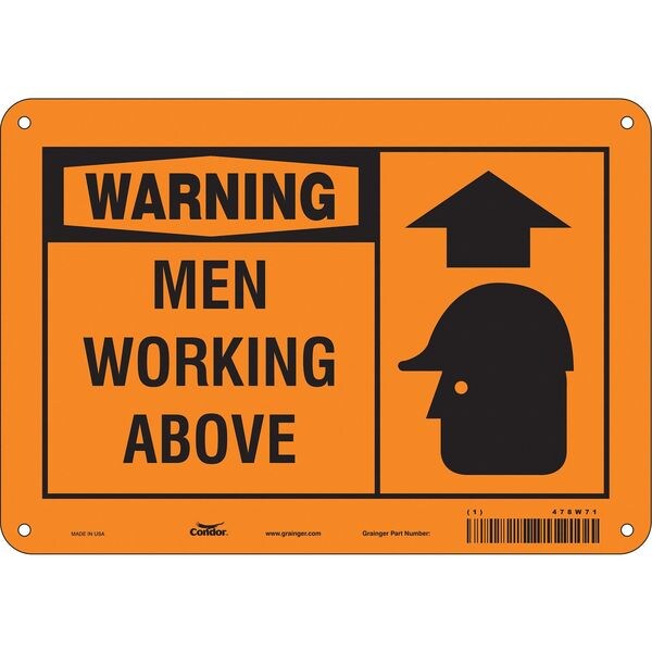 Warning, MEN WORKING ABOVE, 10 in W x 7 in H, Vertical Rectangle, Aluminum, 478W71