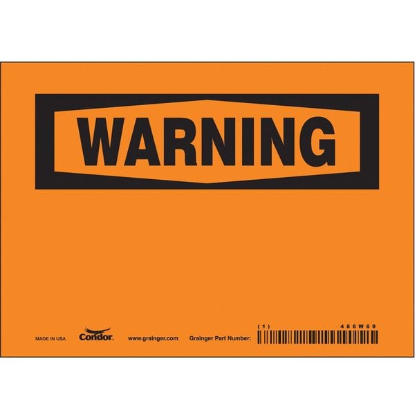 Warning Sign, 7" W, 5" H, English, Vinyl, Orange