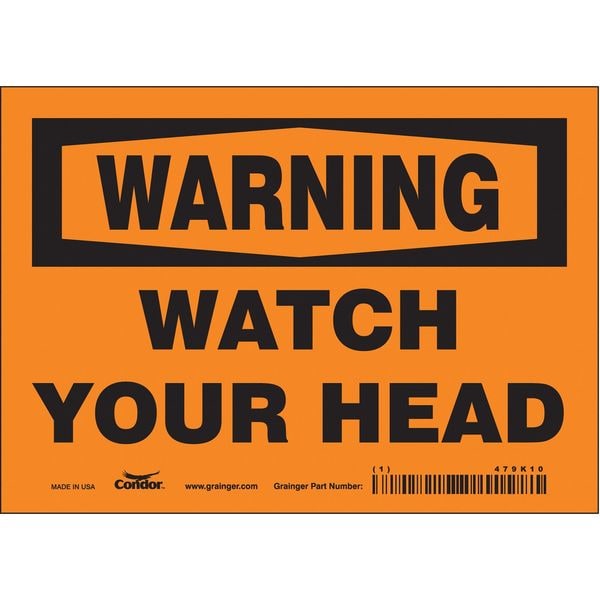 Safety Sign, Horizontal Rectangle, Number of Printed Sides 1, English, Sign Format Traditional OSHA, Sign Legend Watch Your Head, Sign Legend Background Color Orange, Sign Legend Style Text