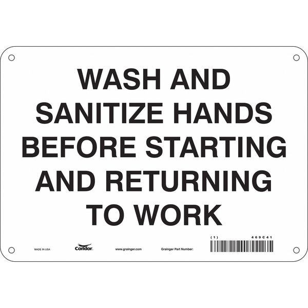 Wash And Sanitize Hands Before Starting And Returning To Work, 10 in x 7 in, Polyethylene, 469C41