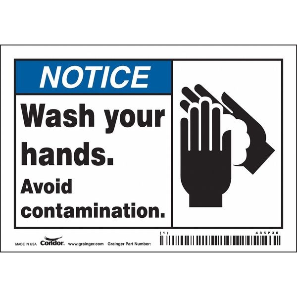 WASH YOUR HANDS. AVOID CONTAMINATION., 5 in W x 3 1/2 in H, Horizontal Rectangle, Vinyl, 485P30