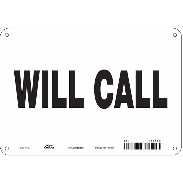 Safety Sign, Vertical Rectangle, Number of Printed Sides 1, English, Sign Legend Will Call, Sign Legend Background Color White, Sign Legend Style Text