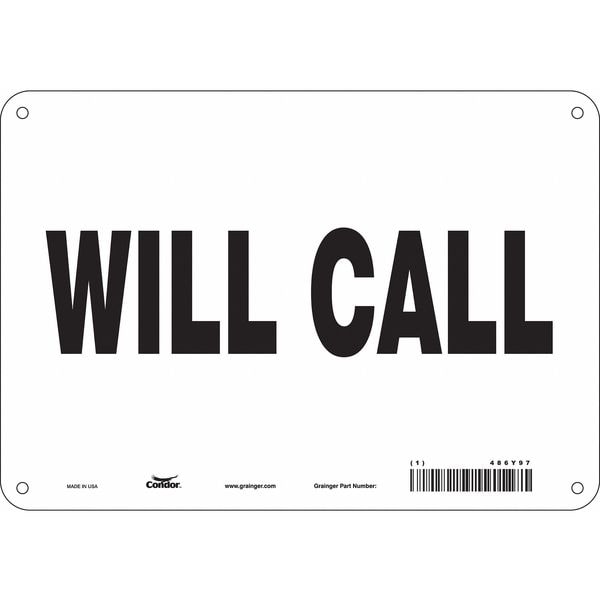 Safety Sign, Vertical Rectangle, Number of Printed Sides 1, English, Sign Format Other Format, Sign Legend Will Call, Sign Legend Background Color White, Sign Legend Style Text