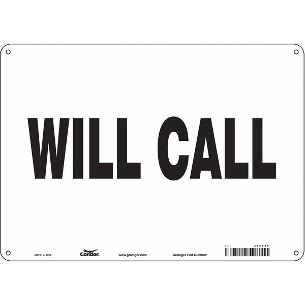 Safety Sign, Horizontal Rectangle, Number of Printed Sides 1, English, Sign Format Other Format, Sign Legend Will Call, Sign Legend Background Color White, Sign Legend Style Text