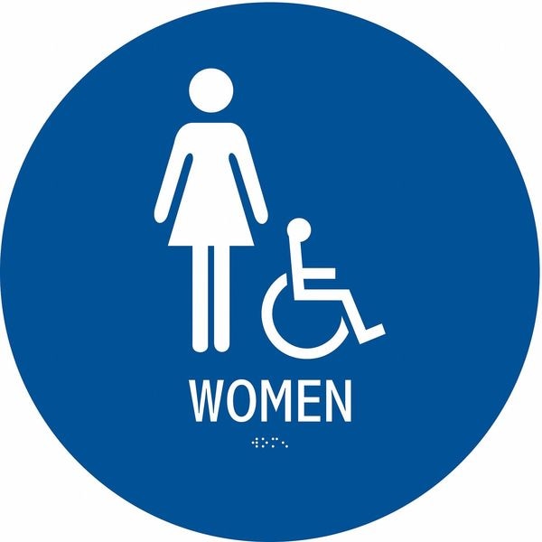 Safety Sign, Circle, Number of Printed Sides 1, English, Sign Legend Women, Sign Legend Background Color Blue, Sign Legend Style Symbol and Text