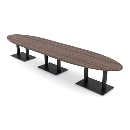 Oval Conference Table With Power Unit, 48 in W, 192 in L, Brown