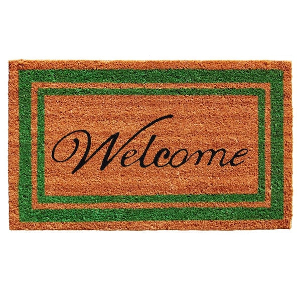 18 x 30 in. Green Border Welcome Rectangular Doormat Natural