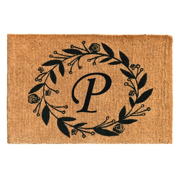 24 x 36 x 1.5 in. Black Rose Rectangular Doormat Natural - Letter P
