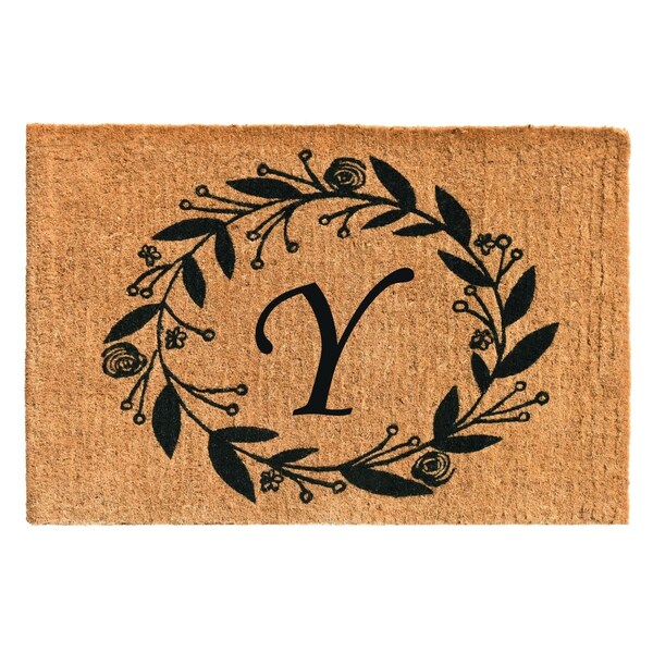 24 x 36 x 1.5 in. Black Rose Rectangular Doormat Natural - Letter Y