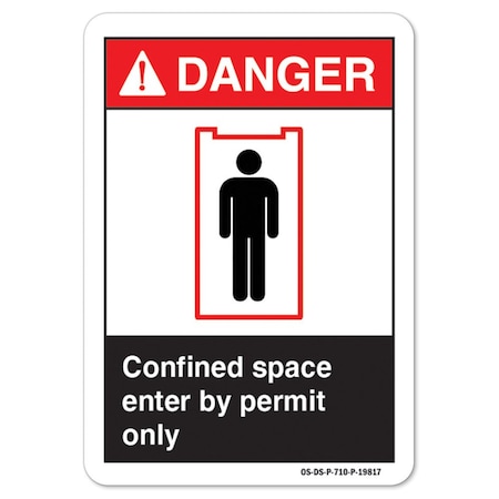 ANSI Danger Sign, Confined Space Enter By Permit Only, 7in X 5in Decal, 5" H, 7" W, Landscape