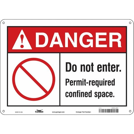 Confined Space Danger Reflective Label, 7 in H x 10 in W, Reflective Sheeting, Vertical Rectangle