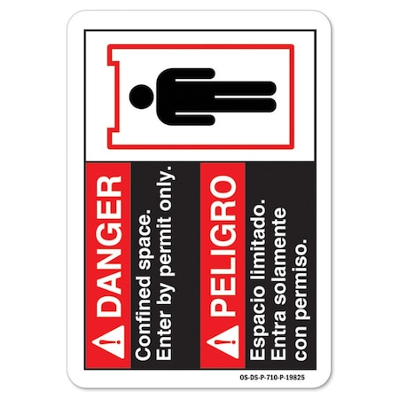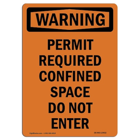 OSHA WARNING Sign, Permit Required Confined Space, 14in X 10in Aluminum, 10" W, 14" H, Portrait